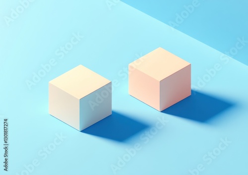 © malayeka, Obraz premium Two pastel cubes on a blue background.