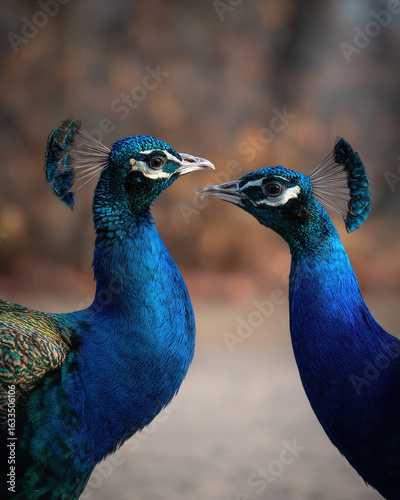 Fototapeta premium Two Peacocks Interacting Soft Lighting Clean Backg