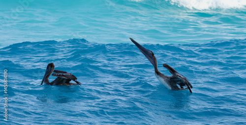 © Ivan, Obraz premium Two pelicans fishing in the water