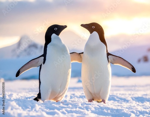 © Jangan, Obraz premium Two penguins facing each other on snow