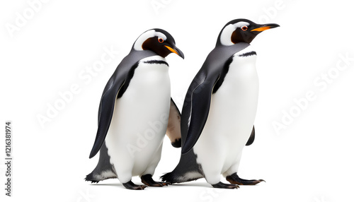 © Tafin, Obraz premium Two penguins isolated on white ice in a cold, snowy environment