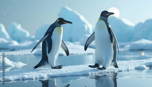 Obraz premium Two Penguins Standing on Ice Floe in Frozen Antarctic Landscape