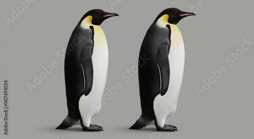 © Vanier Johanne, Fototapeta premium Two Penguins Standing Side by Side on Gray Background