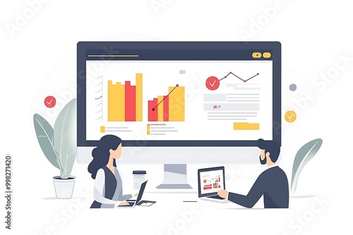 © ardanz, Fototapeta premium Two people analyzing data on a large screen.