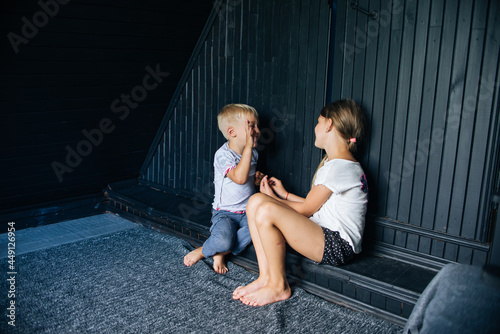 © Виктория, Naklejka premium two people sitting on a sofa
