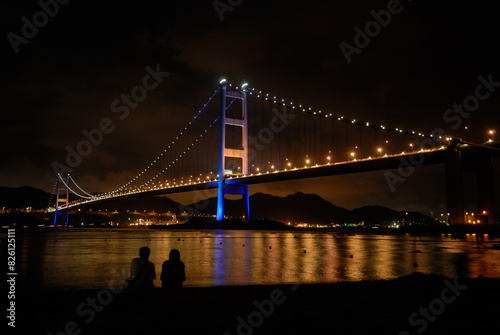 Fototapeta premium Two people under the Tsing-Ma Bridge at night