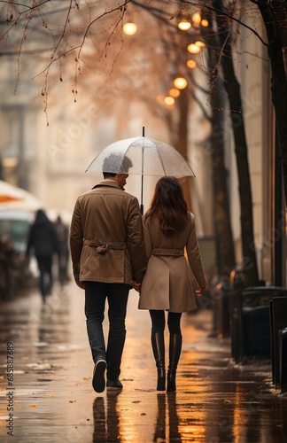© ArtCookStudio, Obraz premium two people walking down a street with umbrellas,