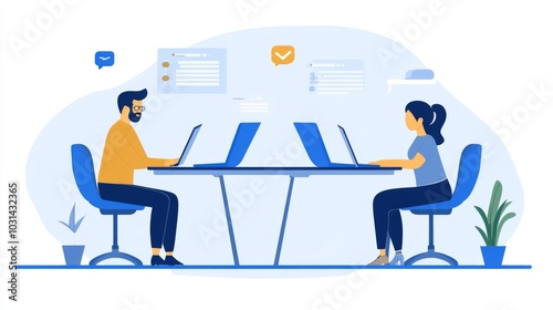 © Andre Jovi, Obraz premium Two People Working on Laptops at a Desk