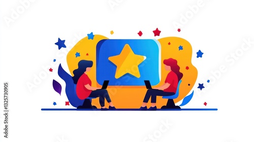 © isend, Obraz premium Two people working on laptops with a large star symbol