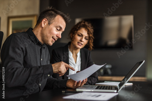 © bnenin, Obraz premium Two persons at work, having business plan.