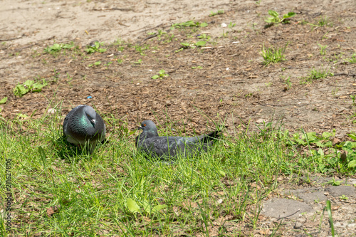 © AnnaPa, Obraz premium Two pigeons on the ground