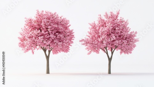 © Hurgan, Fototapeta premium Two pink flowering trees with white background (2)