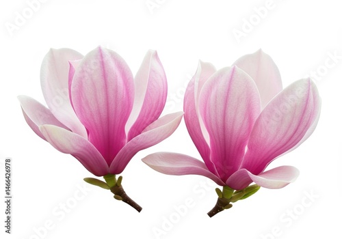 © Vooglo.com, Fototapeta premium Two pink magnolia blossoms isolated against a white background