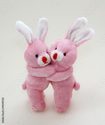Obraz premium Two pink rabbits cuddling