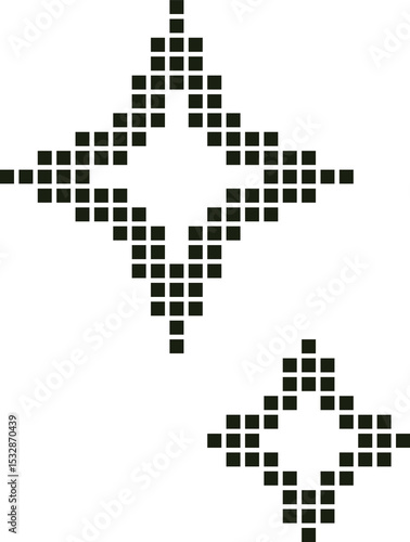 Fototapeta premium Two pixel stars floating on transparent bg, showing larger and smaller diamond outlines and cores