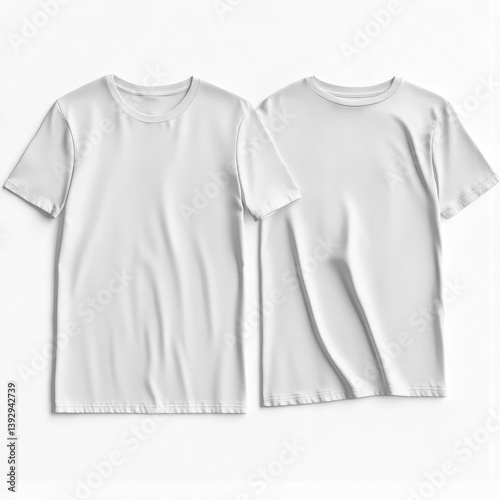 Fototapeta premium Two Plain T shirts on a White Background Mockup, Front and Back View