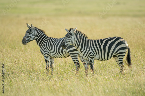 © Nick Dale, Naklejka premium Two plains zebra standing in tall grass
