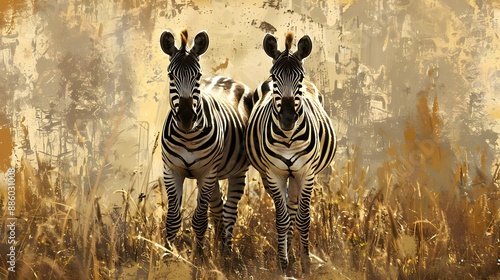 © daniel, Fototapeta premium Two plains zebras (Equus burchelli) in natural habitat