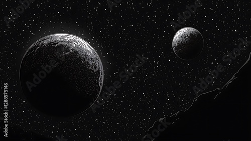 © ABIDZAR ALFAREZ, Naklejka premium Two planets and stars in deep space. Cosmic view with rock background. Use Science, astronomy, background
