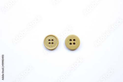 © daniel limantara, Fototapeta premium Two plastic brown buttons isolated on white.