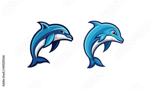 Obraz premium Two playful blue dolphins leaping out of the water