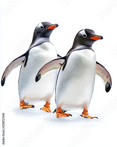 Fototapeta premium Two Playful Penguins Walking Together on a Snowy Background