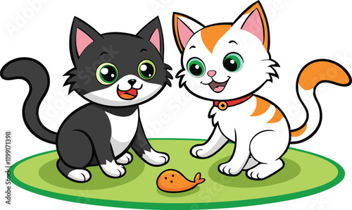 © Ruma, Obraz premium Two playing cats black and white coloring book page for kids vector illustration