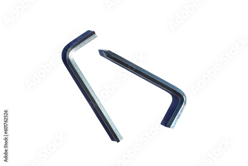 © DENIS , Obraz premium Two polyhedral keys lie on a white background.