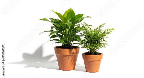 Fototapeta premium Two potted plants on white background showcasing indoor greenery and natural...