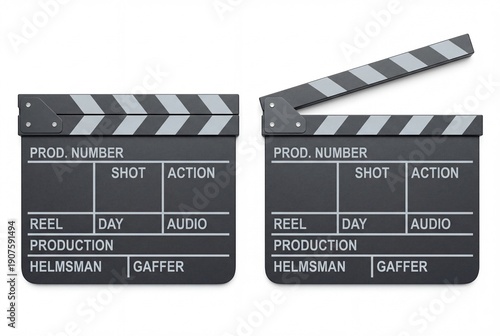 Fototapeta premium Two professional film clapperboards one open and one closed