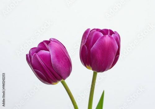 © Vooglo.com, Fototapeta premium Two purple tulips with green stems isolated on white background in studio lighting