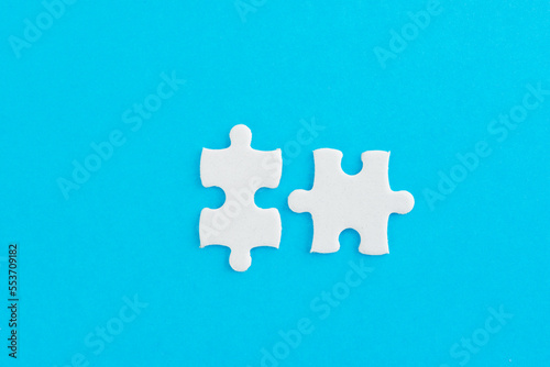 Obraz premium Two puzzle pieces on blue background