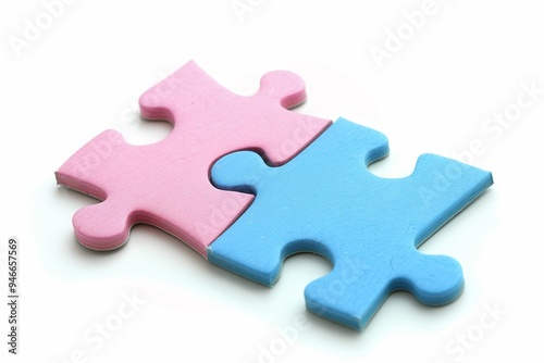 Obraz premium Two puzzles, pink and blue, matching each other on a white background...