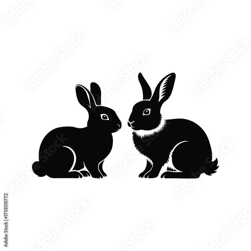 © MSTSHARMIN, Obraz premium Two Rabbit Silhouettes Facing Each Other Vector Illustration