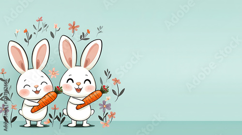 Obraz premium Two rabbits holding a carrot in a field of flowers. generated using AI