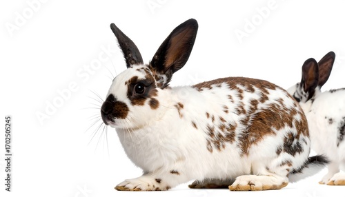 Obraz premium Two rabbits, spotted, white background