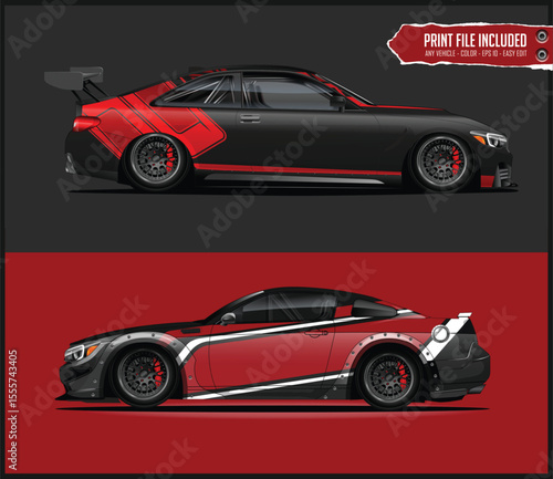 © MdAbdullah, Fototapeta premium Two Racing Car Designs with Red and Black Graphics