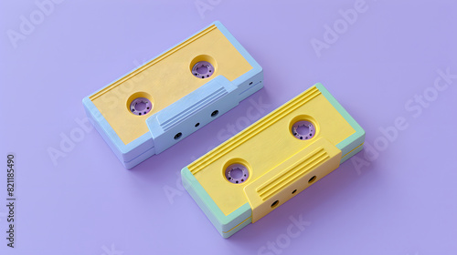 © Jovana Arandjelovic, Obraz premium Two radio cassettes on a pastel purple background. Flat lay concept.