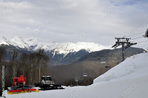 © dojo666, Obraz premium Two ratrack on skiing slope