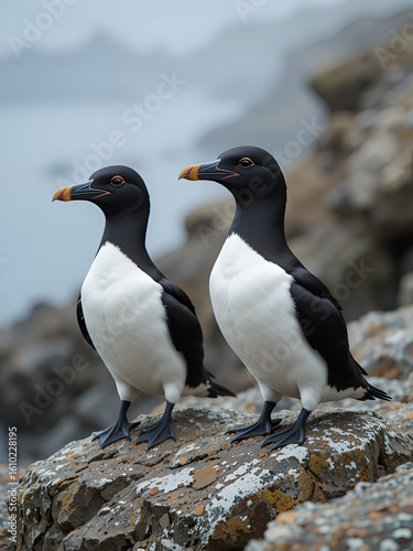 Naklejka premium Two razorbills on rocks in Saltee Islands