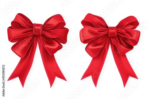 © Abdi, Fototapeta premium Two realistic red satin ribbon bows isolated on white background.