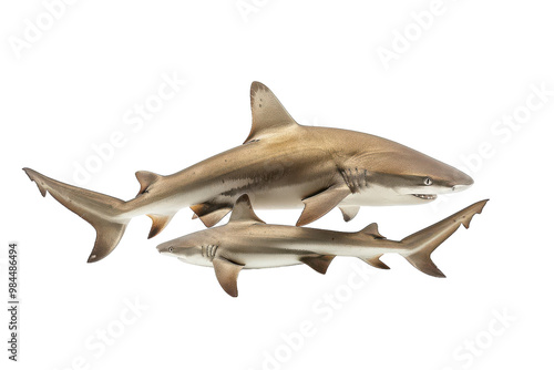 © Maria, Fototapeta premium Two realistic shark models displaying the unique features of marine predators on a clean white background on transparent background