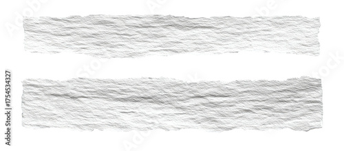 Obraz premium Two rectangular textured paper scraps with rough edges set against a stark...