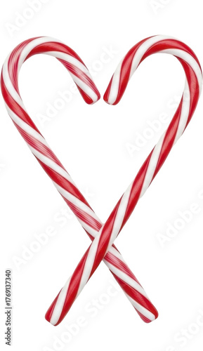 Fototapeta premium Two red and white striped candy canes forming a heart shape on a transparent...