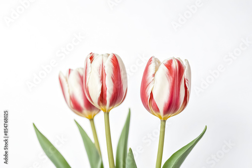 Naklejka premium Two Red and White Tulips on White Background