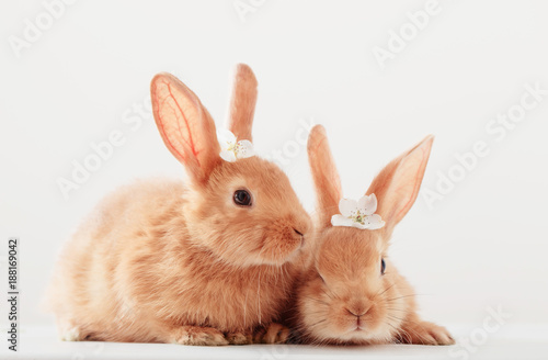 © Maya Kruchancova, Obraz premium two red bunnies on white background