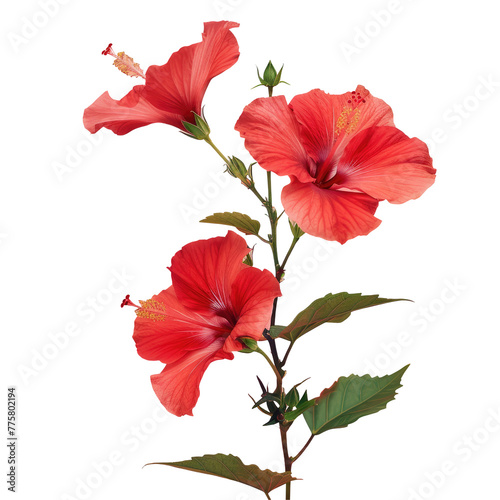 Fototapeta premium Two red flowers on a stem
