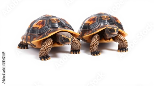 © AR Design, Obraz premium Two Red-Footed Tortoises Facing Forward on a White Background, Shells Displayed