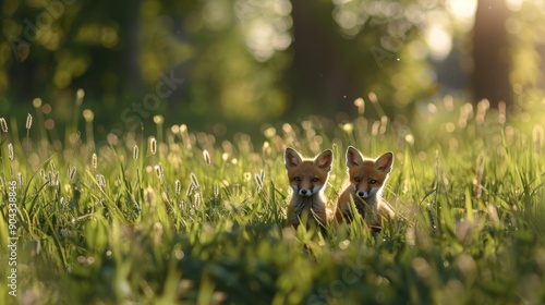 © Iswanto, Obraz premium Two Red Fox Kits Hiding in Tall Grass.