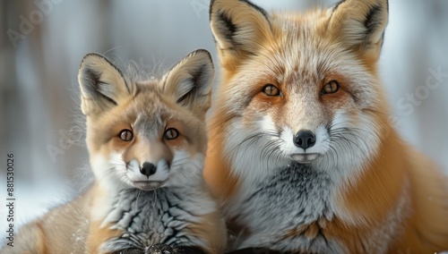 © @_ greta, Obraz premium Two Red Foxes In A Wintery Setting